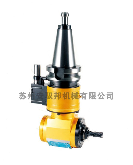 小型銑削動力頭又叫小型角度頭,輕型角度頭——此類角度頭特點為質量輕(一般5-15kg,市場上甚至有3kg的超輕型)、精度高、扭矩偏小、可進刀庫進行自動換刀。此類角度頭用定位塊定位,輸出一般為筒夾或BT30錐柄,有時也有特殊的可以輸出CAT或HSK刀柄,也有部分特殊的直接連接絲攻或面銑刀。 它的特點是本體與角度頭可360度自由回轉;內藏式筒夾設計,剛性強;可用于ATC自動換刀;高精度,干涉小;校正簡單,可用于攻螺紋、鉆孔和中輕度銑削。